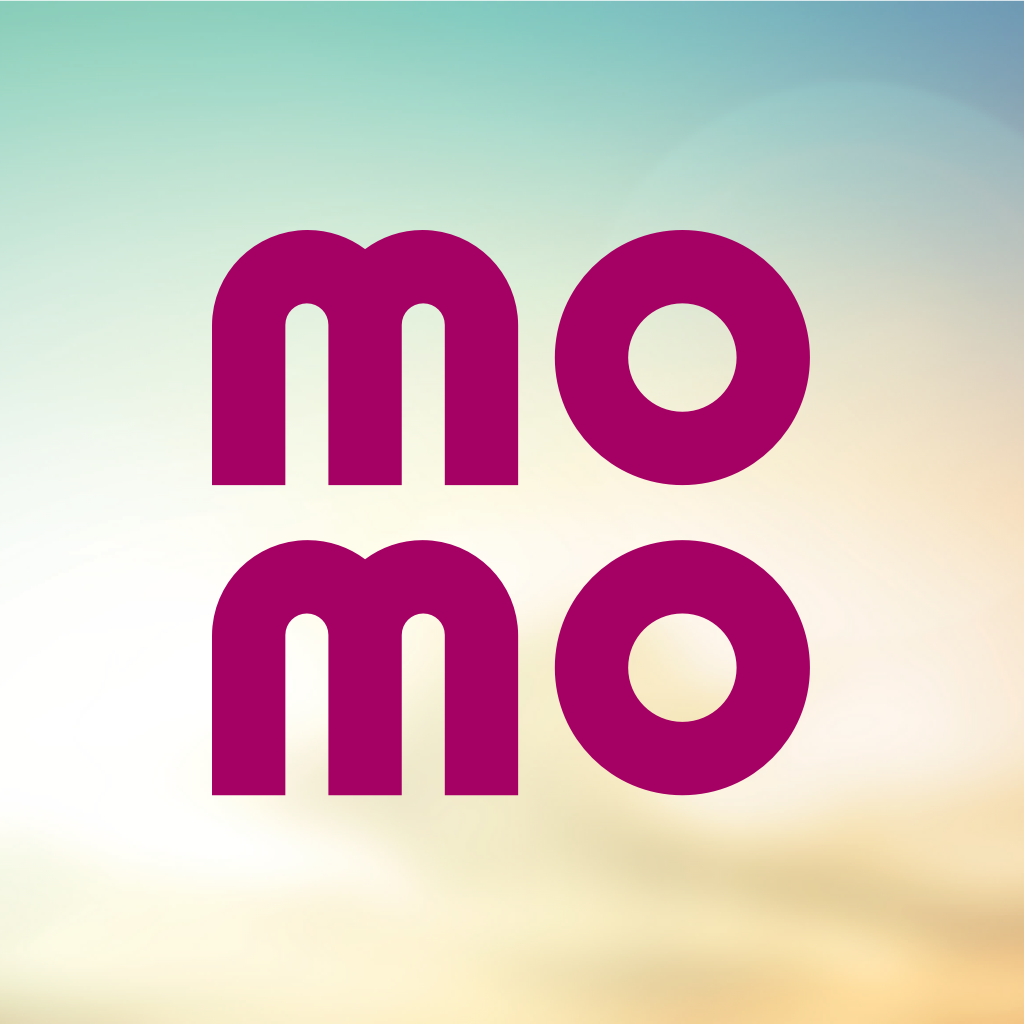 Logo chính của MoMo được ghép nối bởi hai từ “Mo” + “Mo” đặt cân xứng. Đây là biểu tượng nhận diện không thể thiếu trên mọi ấn phẩm quảng cáo và biểu ngữ quảng bá của MoMo.